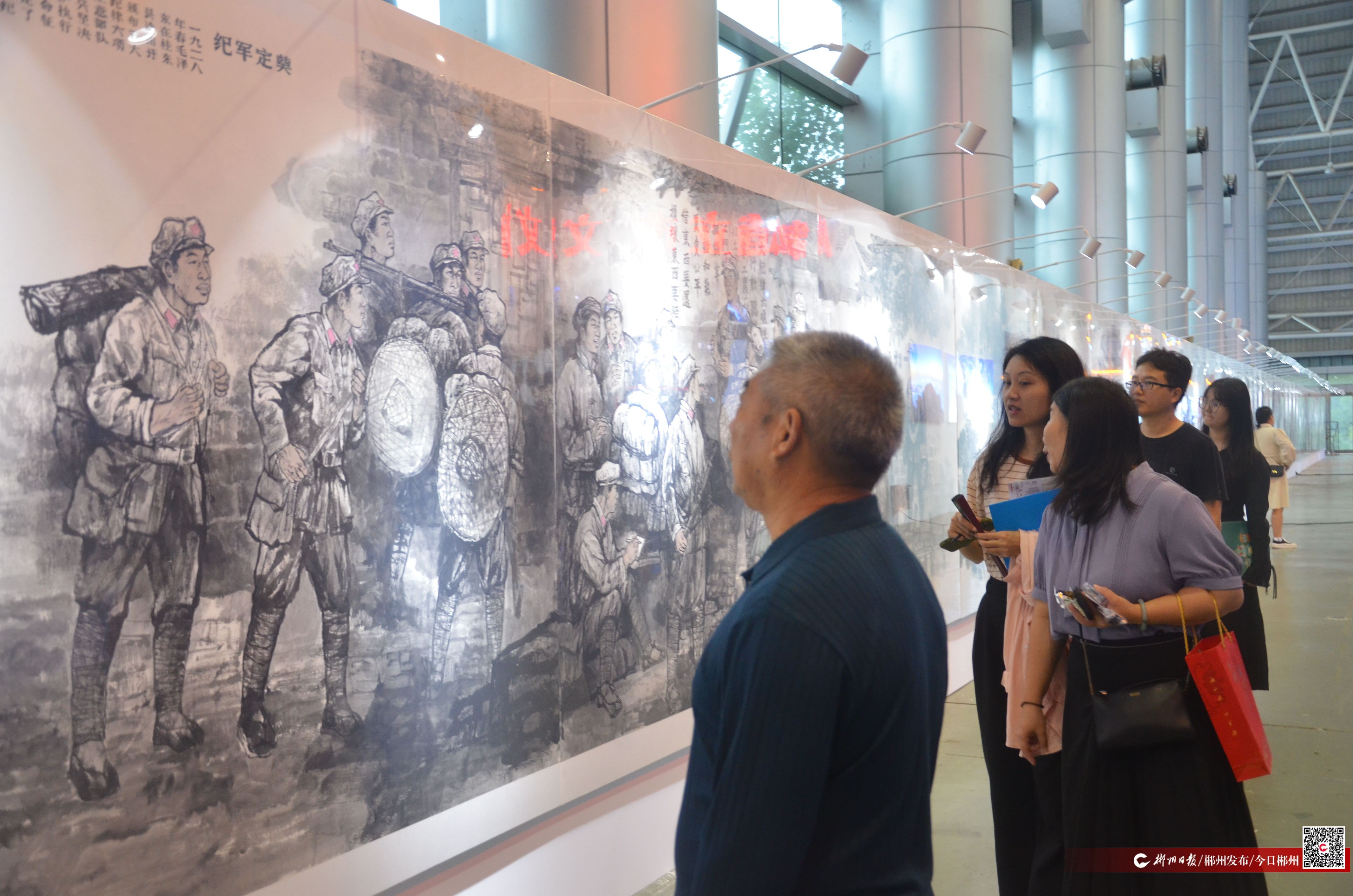 山水画卷,郴州相见。9月15日,“红绿如画 江山多娇”郴州红色绿色古色大型主题绘画创作展首次亮相郴州国际会展中心。高1.8米、长150米的郴州红色绿色古色主题绘画长卷首次亮相。
